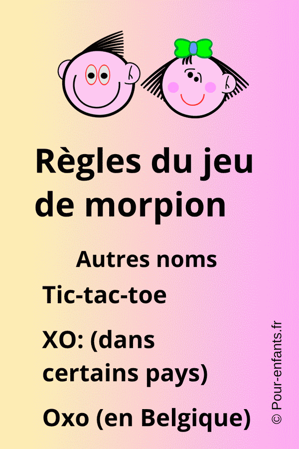 La règle du jeu du morpion, aussi appelé Tic Tac Toe, est simple et amusante. Le morpion est un jeu de papier et crayon idéal pour les enfants et très facile à organiser. Voici comment jouer et quelles sont les variantes possibles.