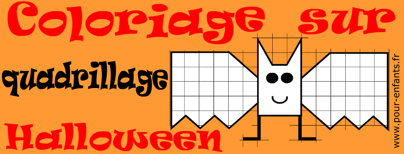 Des idées et fiches de coloriages sur quadrillage pour Halloween. Comment dessiner une chauve souris Halloween facilement sur feuille quadrillée. Pour enfants dès la maternelle.
